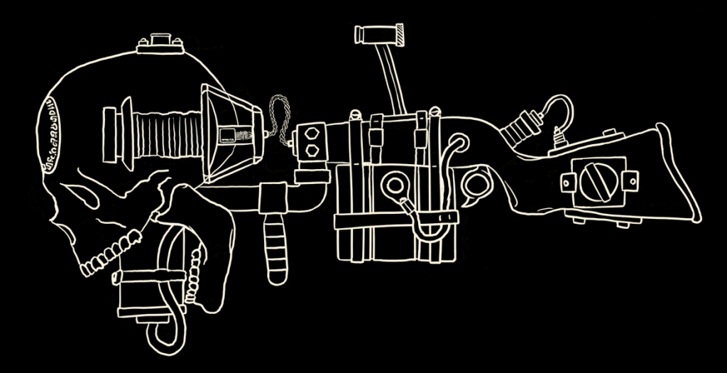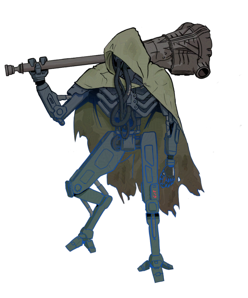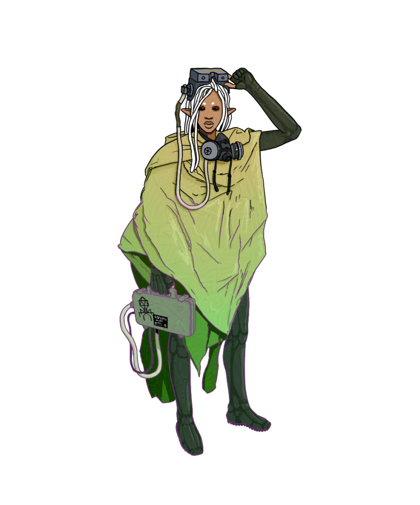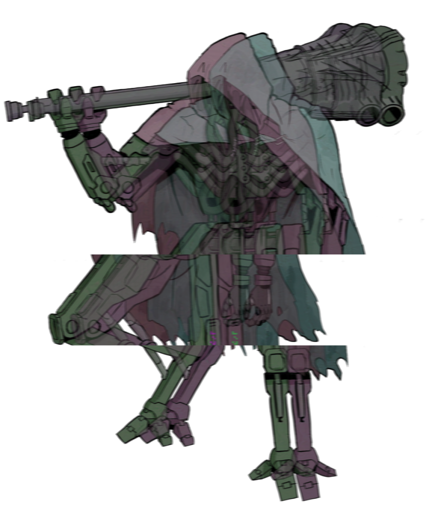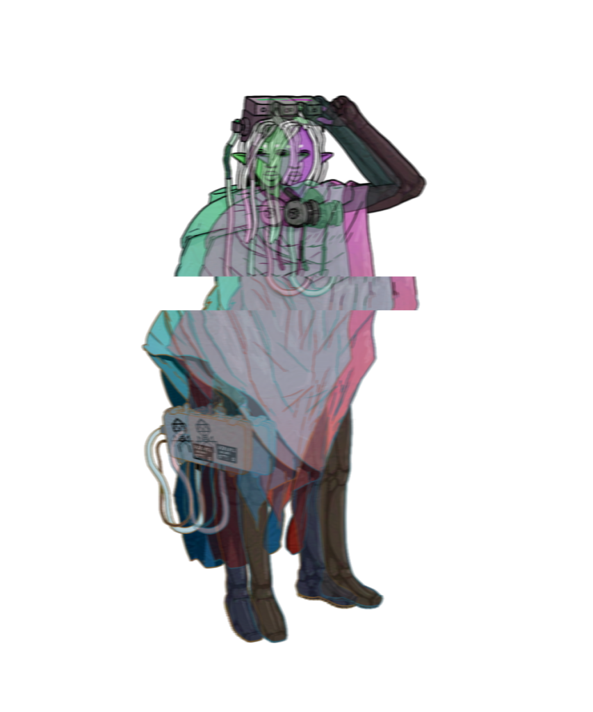 The assemblage of realities that serves as GRIMWIRE™’s setting is a homage to multifarious works of sci-fi and fantasy from diverse genres, including Xenogears, Cave of Qud, The Elder Scrolls, Mad Max, Nausicaa of the Valley of Wind, Junk Head, BLAME!, Vampire Hunter D, and Trigun.